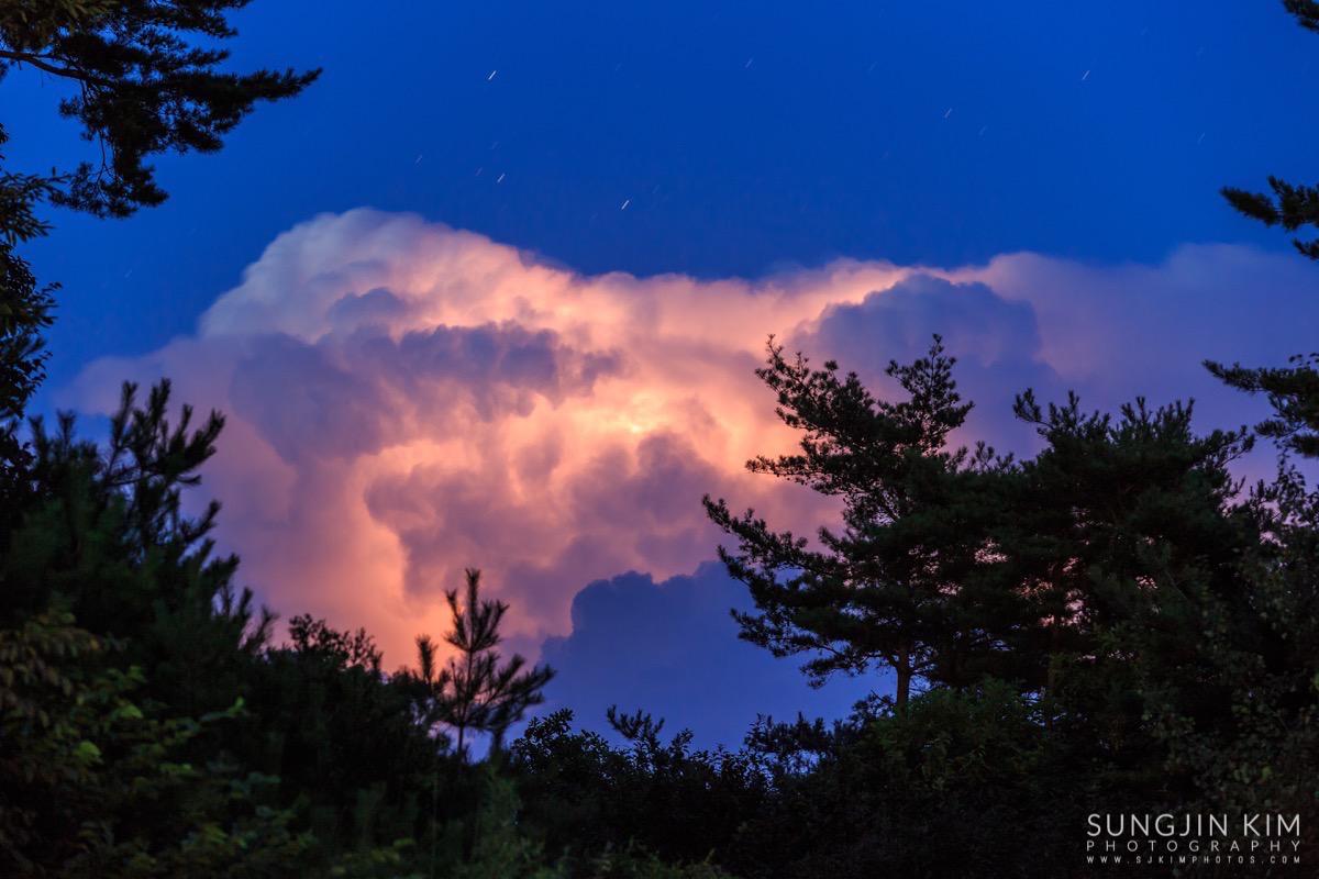장비를 정리하고 철수 하려다 말고 번개 치는 모습을 담아 보려고 했는데 번개가 구름 속에 가린 채로 쳤기 때문에 제대로 된 모습은 담을 수가 없었다. 그래도 평소에는 보기 힘든 장대한 자연의 모습을 조금이나마 담을 수 있었던 것으로 만족해야 했다.