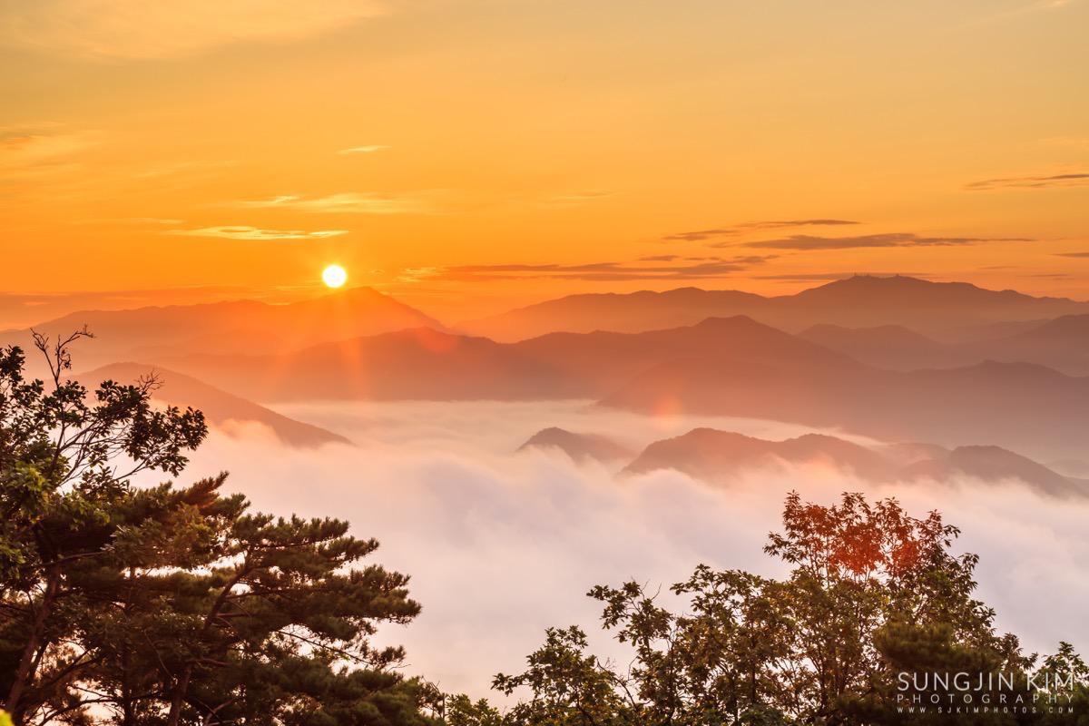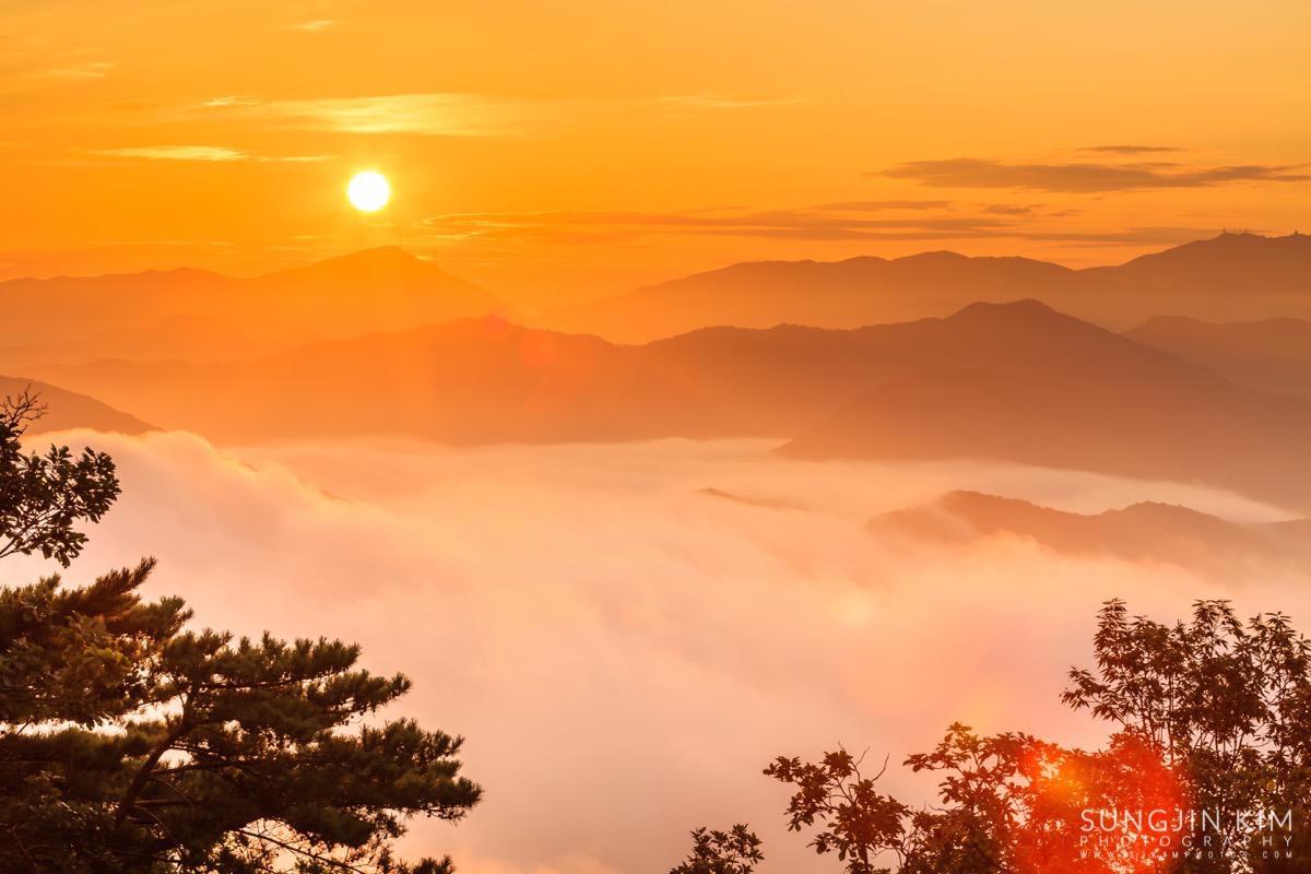 정적 속에 멀리서 들려오는 목탁 소리와 여명에 이어서 운해 그리고 일출로 이어지는 광경은 나를 무아지경에 빠지게 만들었다.