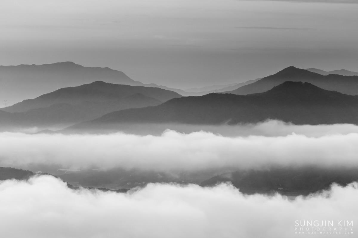 이 곳을 가기 전날 날씨를 보니 왠지 운해가 낄 것만 같은 예감이 강하게 느껴졌는데 아니나 다를까 시간이 갈수록 운해가 점점 짙어지고 마치 바다의 파도 처럼 넘실넘실 출을 추며 넘어가고 있었다. 게다가 평일이어서 사진 찍는 사람이라고는 나 혼자 뿐이어서 일출 무렵의 상쾌함과 습기가 주는 기분 좋은 느낌을 만끽하며 운해와 일출 삼매경에 빠져들었다.