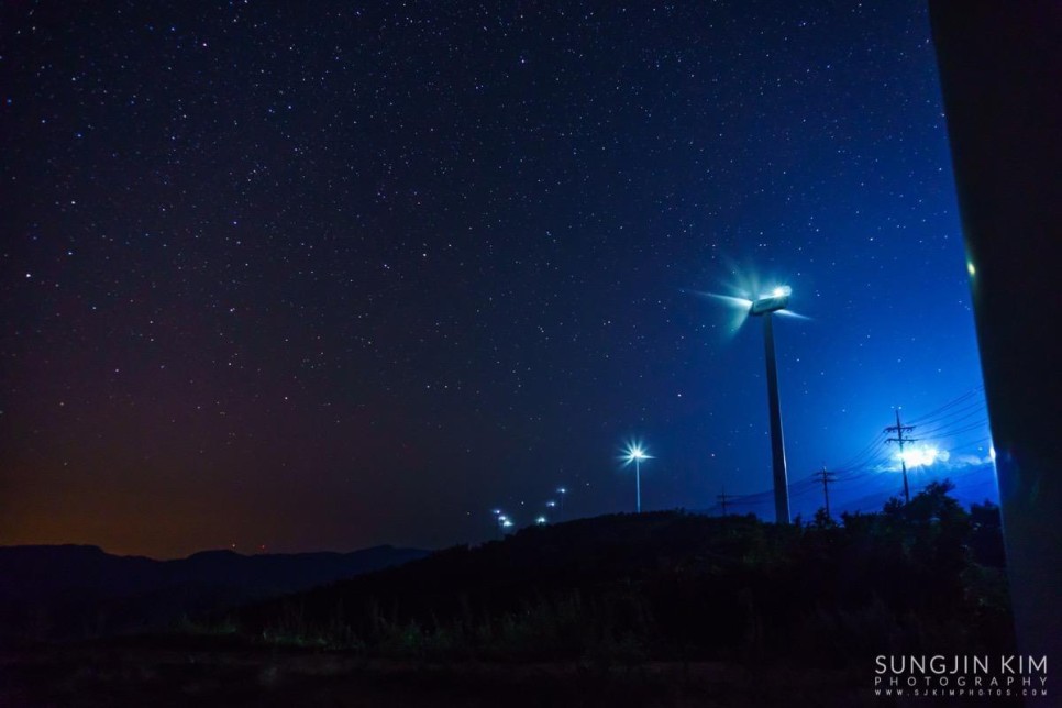 작년 가을 강원도 태기산에서 밤을 새며 풍력발전기와 함께 담은 은하수 사진들...