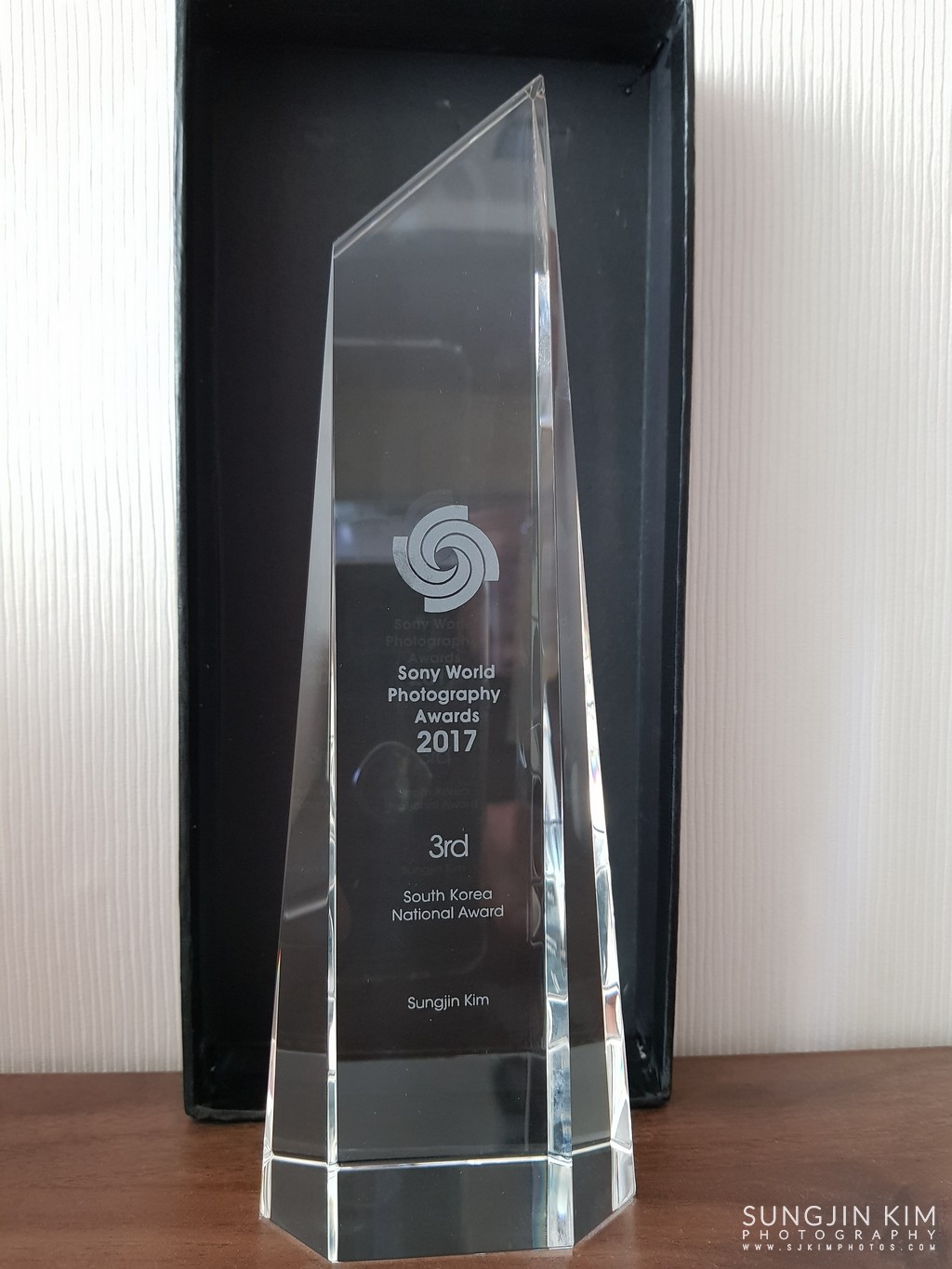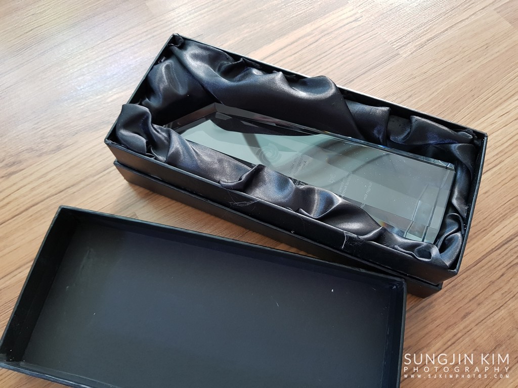 국제 소포로 도착한 수상 트로피. 열어서 사진만 찍어두고 가보로 보관 중이다.