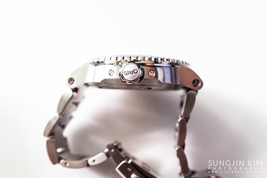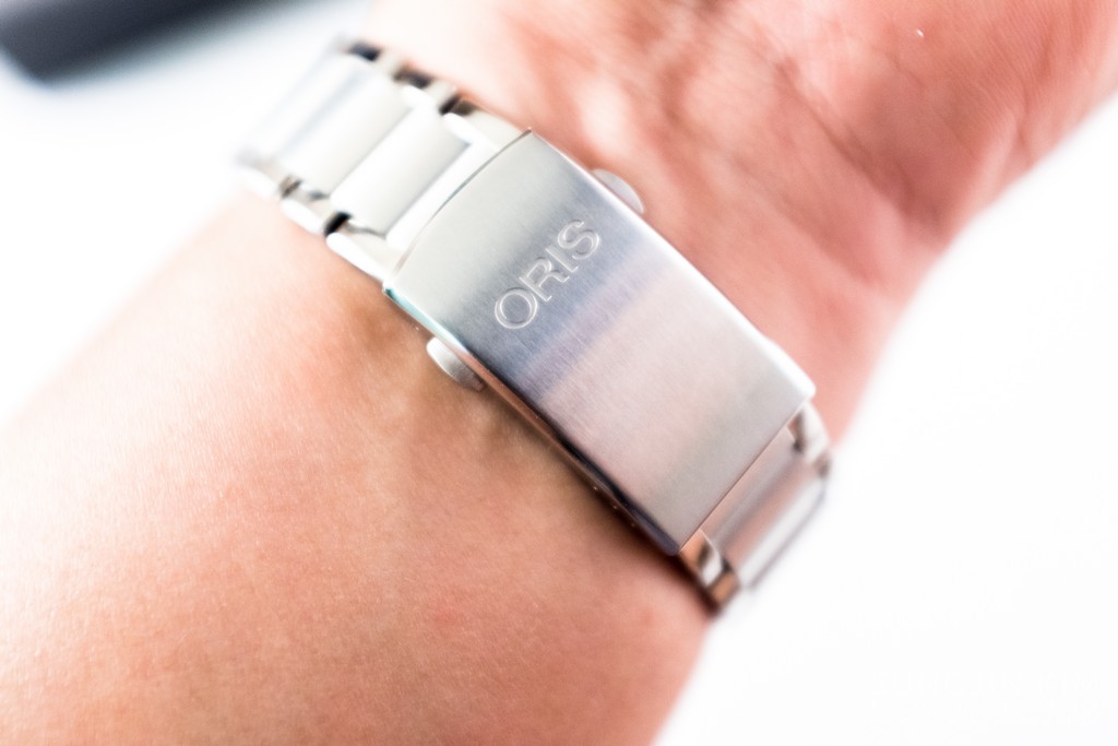 브레이슬릿의 러그 부분의 폭이 24mm에 달하는 두꺼운 것을 감안할 때 착용하기 편하도록 점점 좁아지는 형태로 되어있다. 브레이슬릿 엔드 러그 스타일 뿐만 고무 스트랩도 마음에 든다. 스트랩의 디자인이 독특한 반면에 한 가지 단점은 가격이 비싼 오리스의 정품 고무 스트랩 외에 구매할 수 있는 써드파티 스트랩의 선택지가 그렇게 많지는 않다.