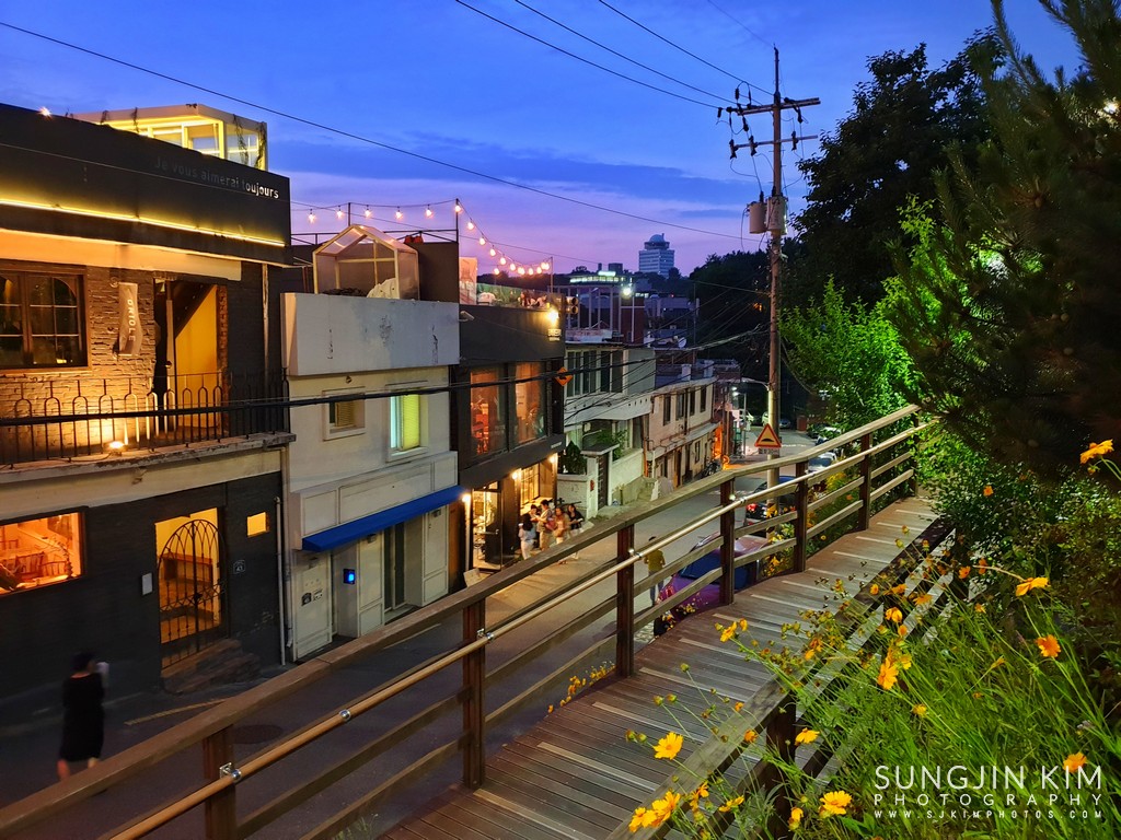 해방촌 좁은 골목을 이리저리 올라가서 택시에서 내리면서 밖을 보니 이미 많은 사람들이 대기 중이었다. 꽤 오랜 시간을 기다린 끝에 들어갈 수 있었는데 루프탑의 자리는 대부분 2인석이라 루프탑이 바로 보이는 실내의 창가에 자리를 잡았다.