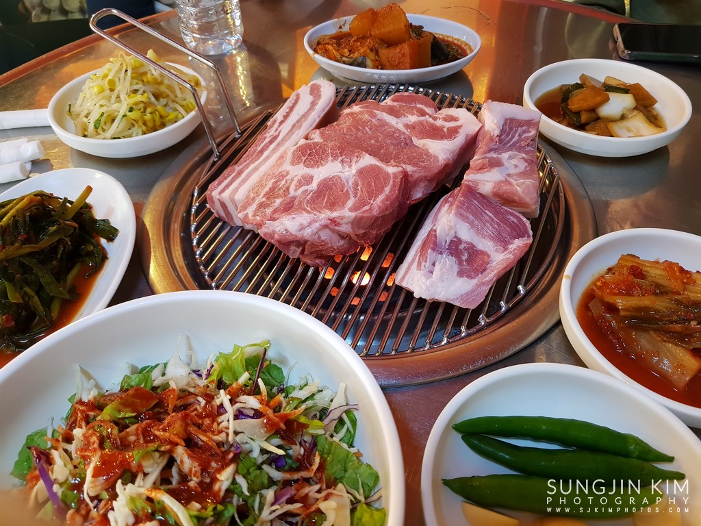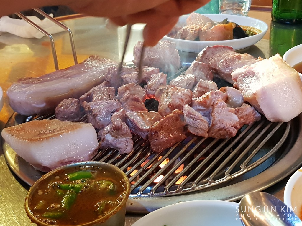 드디어 저녁 식사를 위해 제주 흑돼지 삼겹살 집에...
