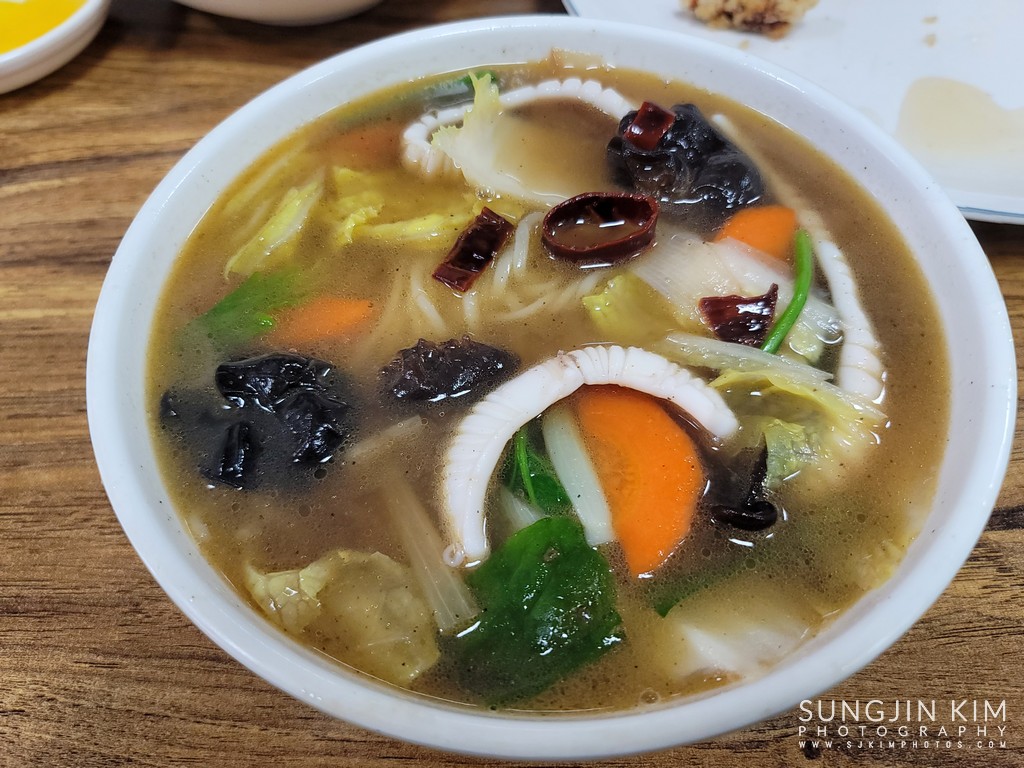 대표적인 메뉴는 바로 삼선짬뽕인데 우리가 알고 있는 일반적인 짬뽕과는 맛과 색깔부터 다른데 신선한 해물과 국물 맛이 일품이다.