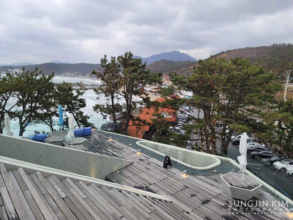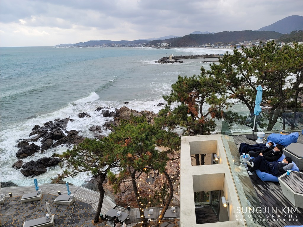 2021년 초 겨울, 부산 여행 때 들렸던 기장에 있는 해변 카페인 '웨이브온 커피'의 풍경.