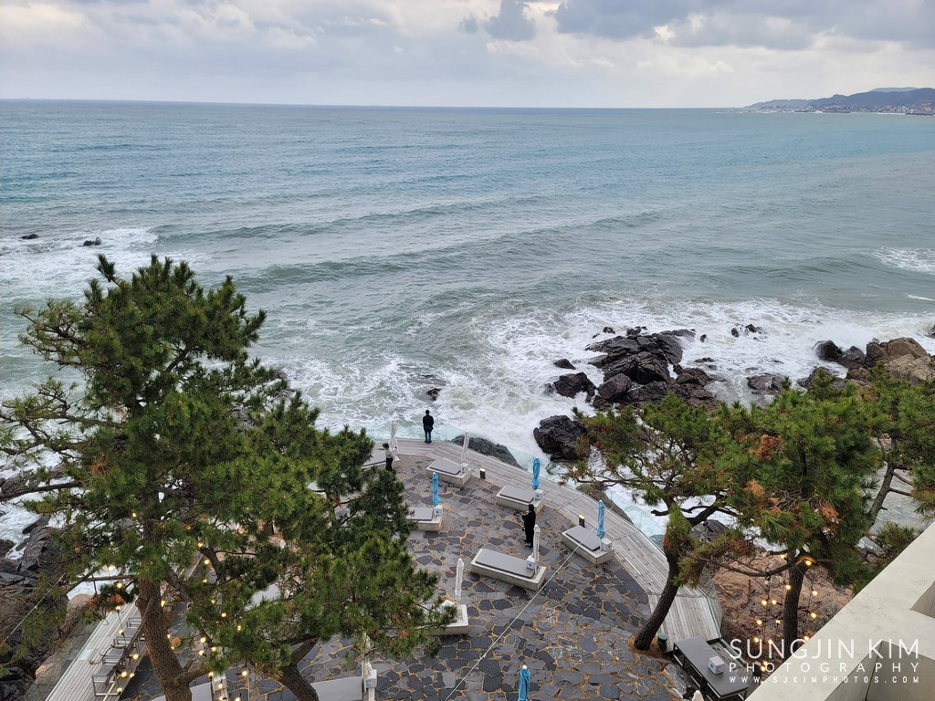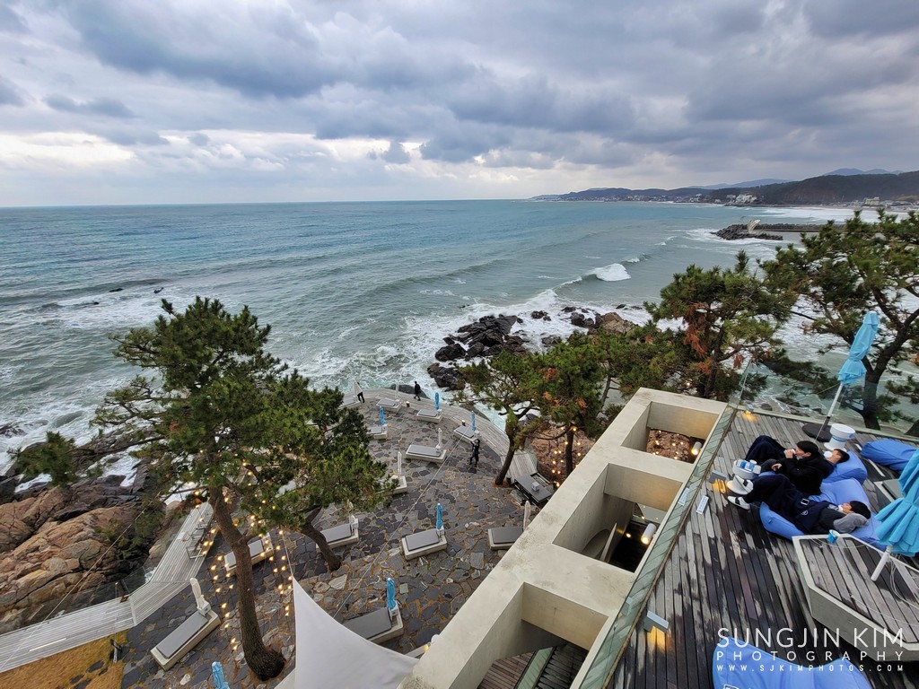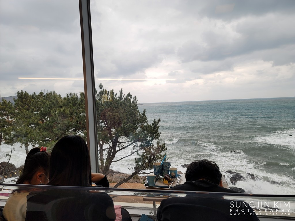 2021년 초 겨울, 부산 여행 때 들렸던 기장에 있는 해변 카페인 '웨이브온 커피'의 풍경.