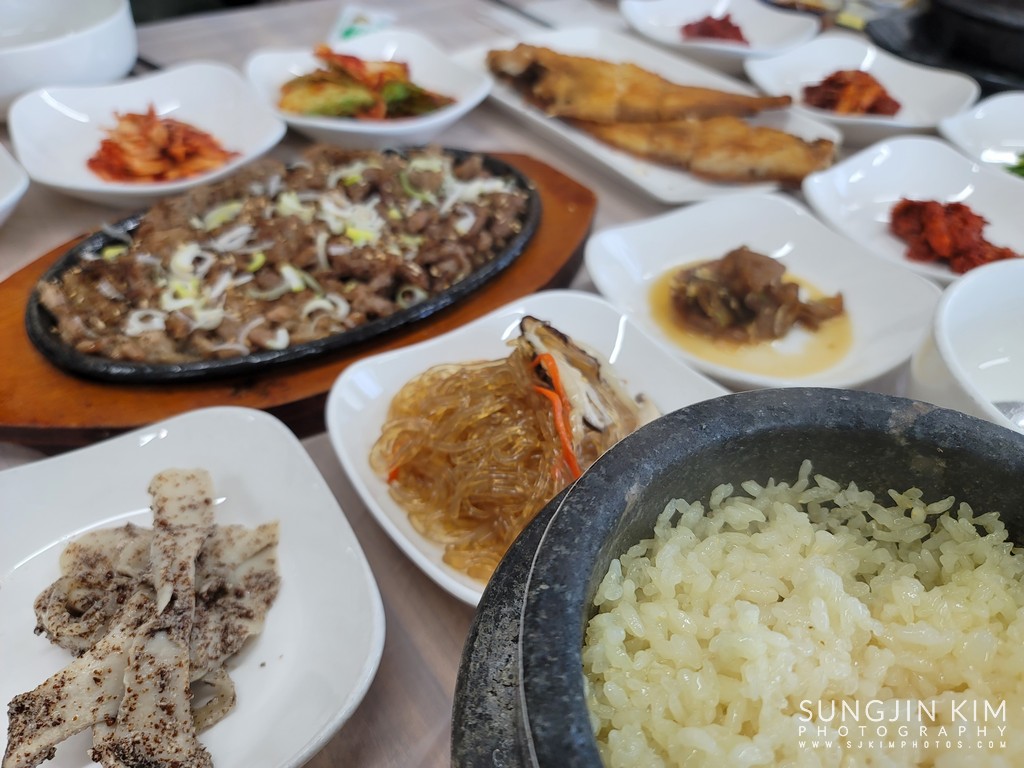 밥은 취나물이 들어간 돌솥밥이고 개인적으로 반찬으로 나오는 가자미 튀김이 맛있었다.