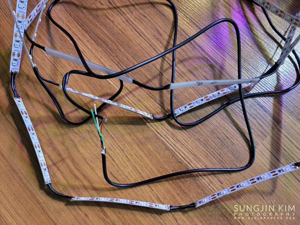 모든 LED 스트립을 장착한 모습.