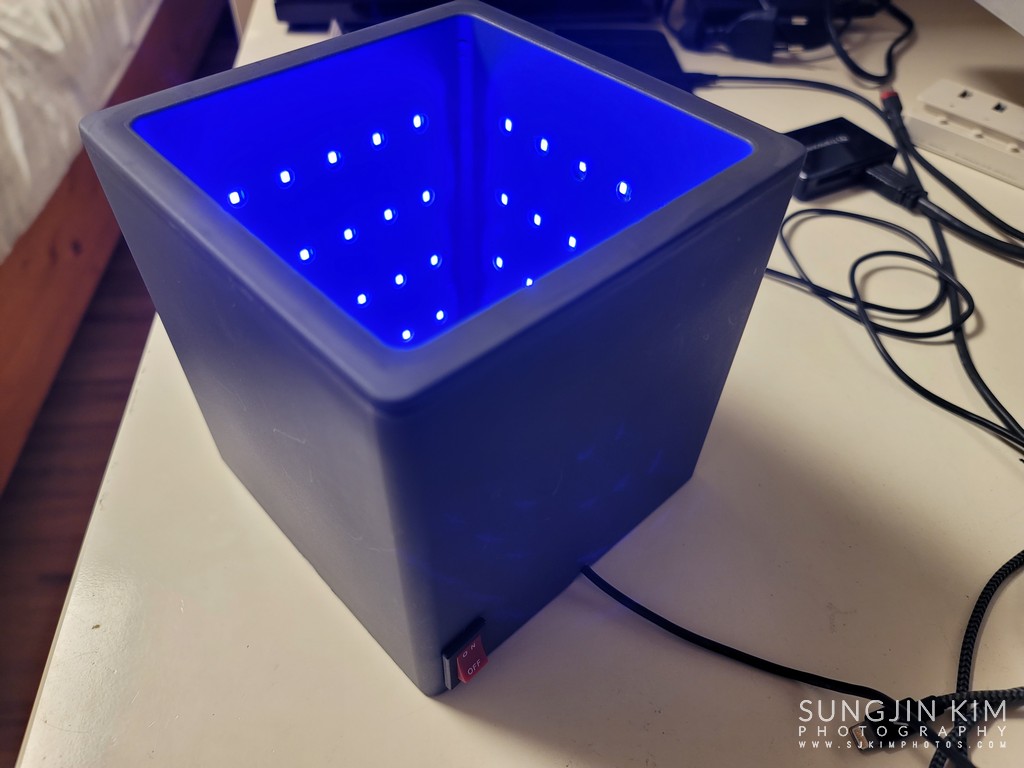 시중에 판매되고 있는 기성품은 실제 장착되어 있는 LED 개수에 비해 가격도 너무 비싸고 만듦새도 마음에 들지 않아서 여기저기 쇼핑몰을 검색하면서 필요한 자재들을 찾아보았다. 자외선 LED는 알리익스프레스에서 $4~5 정도 주고 무료배송으로 구매했고 축광기 케이스는 다이소에서 미니 플라스틱 화분을 구매해서 사용했다. 사실 케이스 때문에 며칠을 검색하고 고민하다가 결정했는데 다 만들고 나니 미니 화분으로 결정하길 잘한 것 같다.