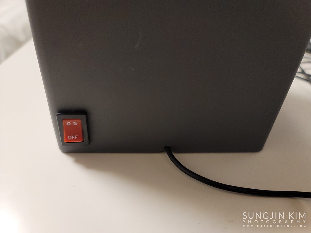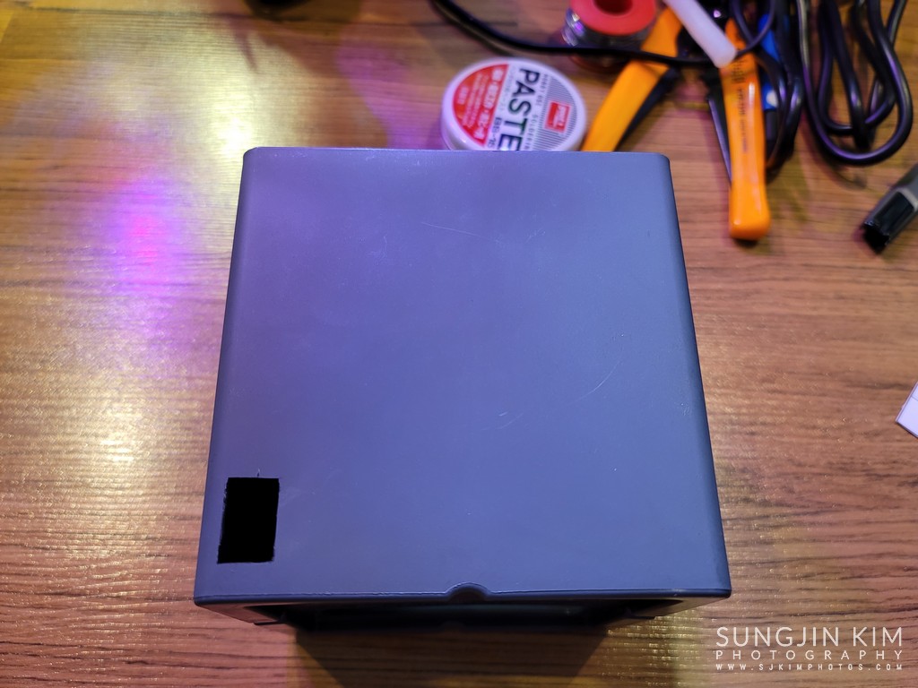 외측 케이스에 전원 스위치 자리를 미리 칼로 뚫어 놓았다.