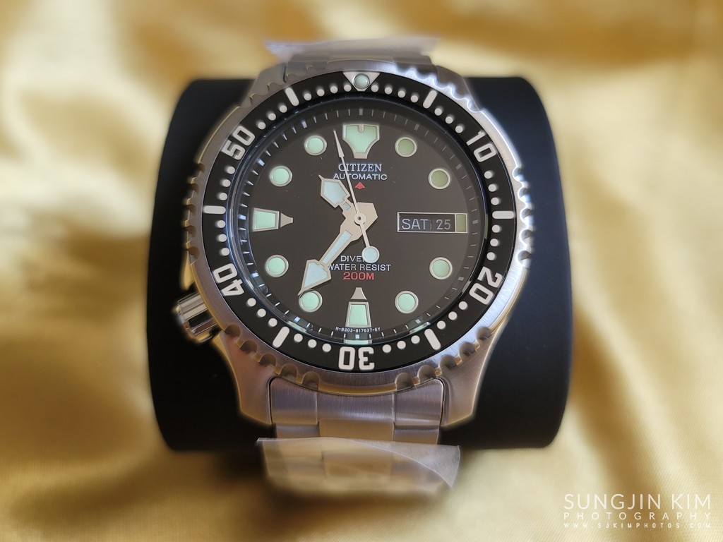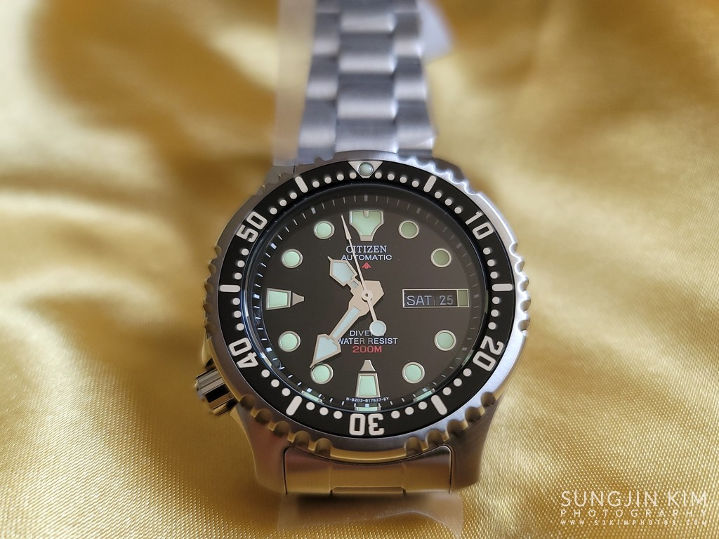 CITIZEN 브랜드와 "AUTOMATIC"은 12시 위치에 흰색으로 인쇄되어 있고 "DIVER'S WATER RESIST"는 6시 위치에 인쇄 되어 있다. 또한 다이얼에는 시티즌 로고와 200m가 빨간색으로 인쇄 되어 있다.