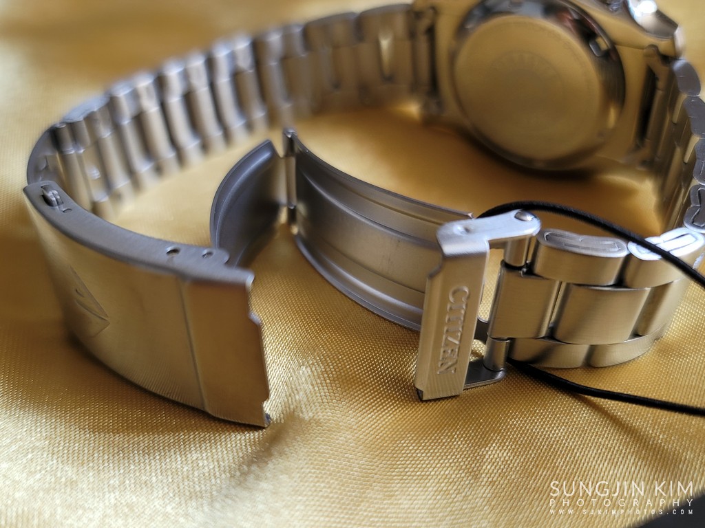 이 스트랩은 안전 걸쇠에 'CITIZEN'이 음각되어 있고 윗면에 시티즌 로고가 양각되어 있는 스테인리스 다이버의 플립 락 걸쇠가 특징이다. 이 걸쇠는 슬라이딩 다이버의 확장을 특징으로 하지만 미세 조정은 지원하지 않는다.