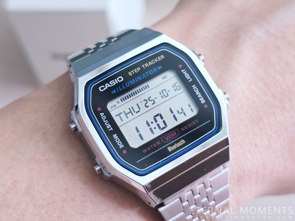 박스에서 꺼내 처음 손목에 찬 순간, "아, 이거다!" 싶었다. 레트로 디지털 워치의 클래식한 디자인에 스텝 트래커, 일루미네이터, 블루투스 연결 기능까지... 1980년대 감성과 2020년대 기술이 하나로 합쳐진 느낌이랄까?